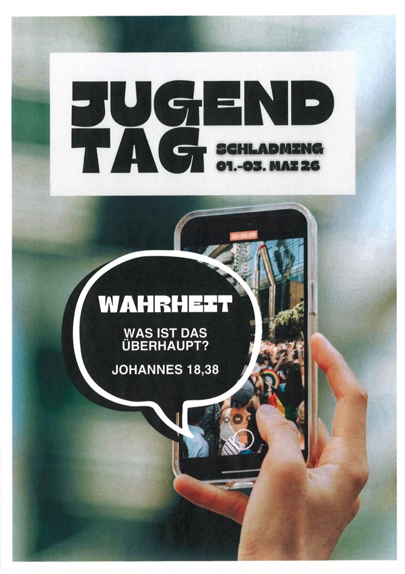 Vom 1. bis 3.5.2026 findet der alljährliche Schladminger Jugendtag zum Thema "Wahrheit, was ist das überhaupt" statt. Herzliche Einladung dazu!