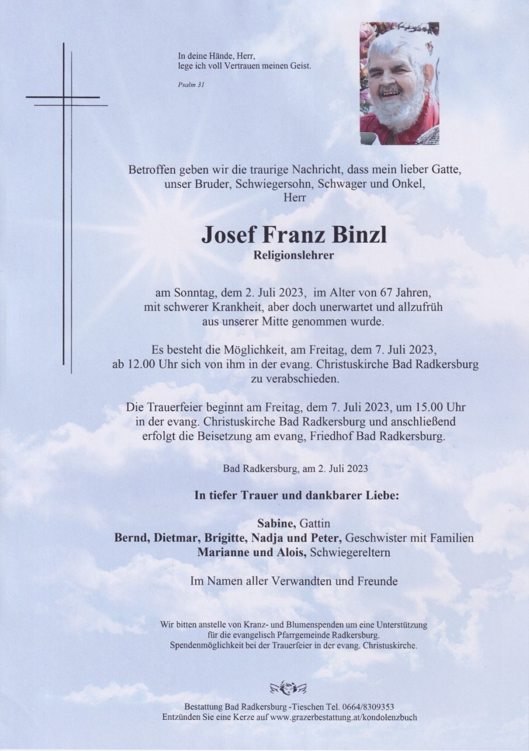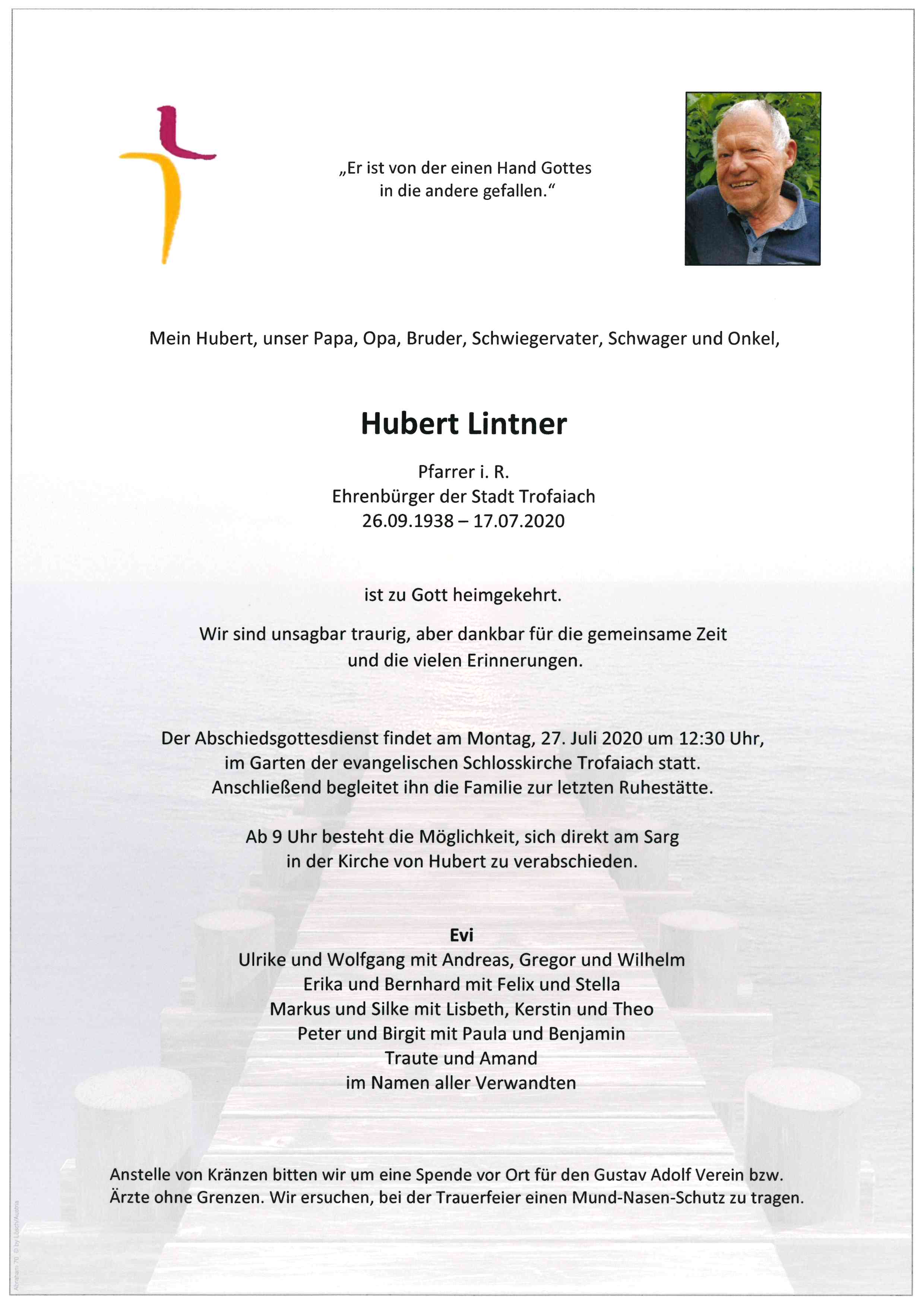 Trauer um Pfarrer in Ruhe Hubert Lintner